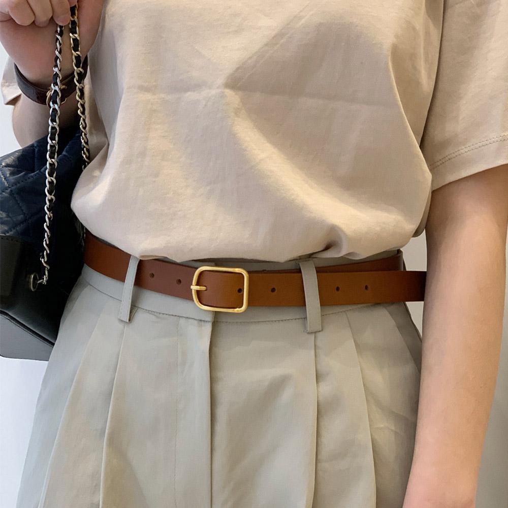 여성 소가죽 허리띠 금장 버클 포인트 통가죽 벨트