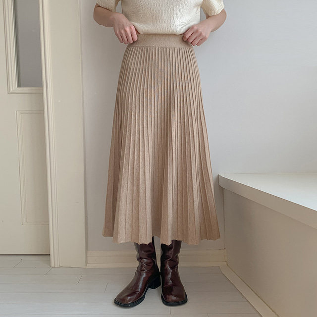빅사이즈 S-4XL 로린 플레어 주름 니트 롱스커트 하객룩