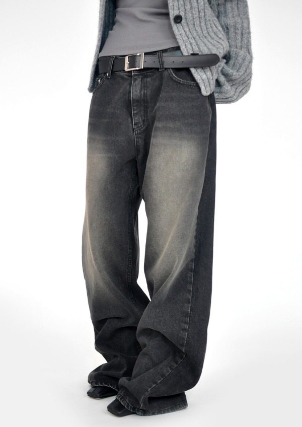 (UNISEX)블랙 샌드 워싱 데님팬츠