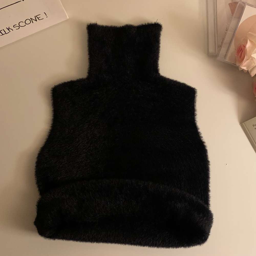 블랙 터틀넥 민소매 심플 여성 나시 목폴라 니트 J01