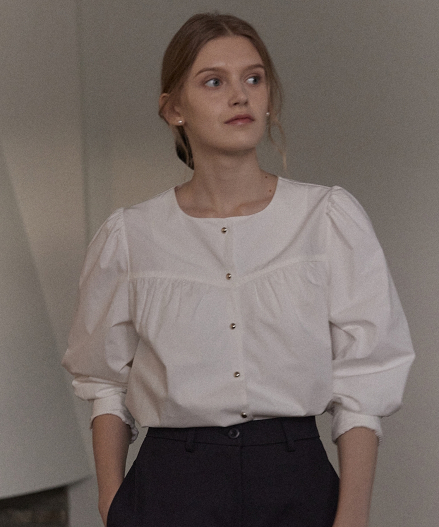 Shirring Goldish Blouse - Off White