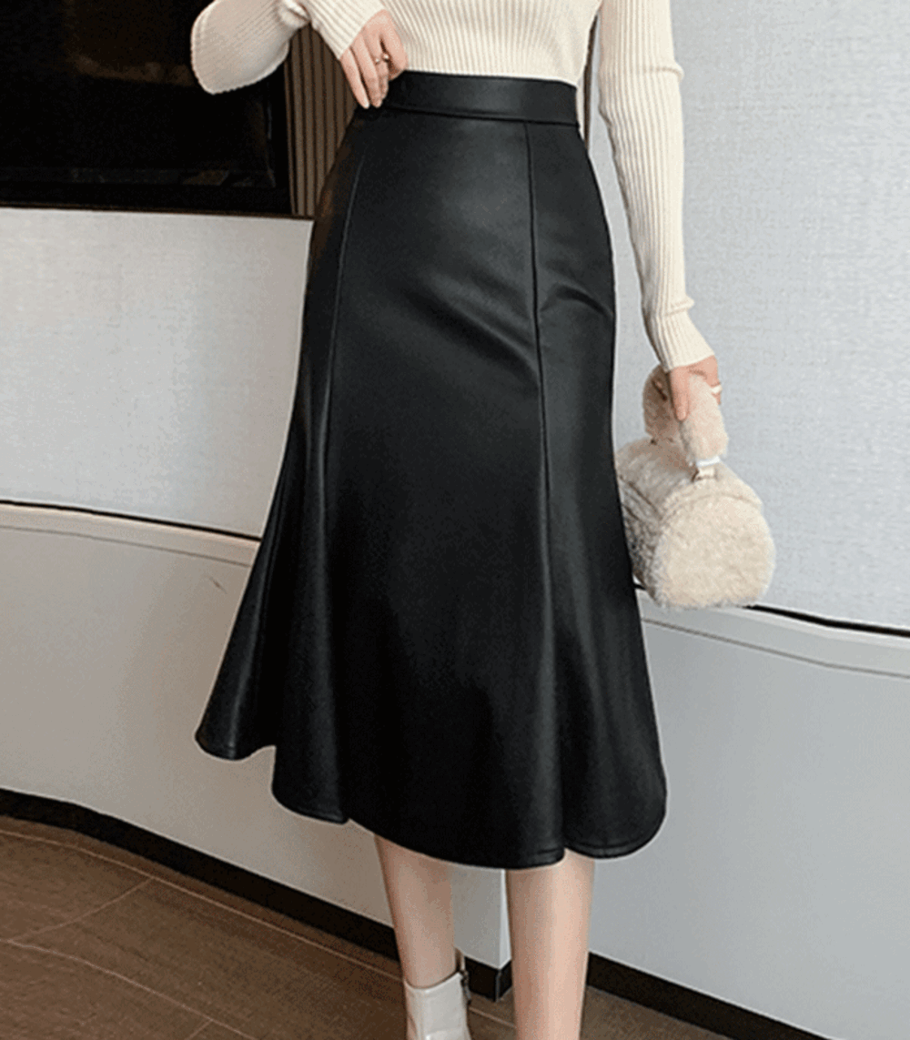 [가죽 미디 스커트] 하이웨스트 A라인 가죽치마 레자 치마 블랙 롱 스커트 레더 미디스커트 머메이드 레더스커트 라인 후리아스커트 겨울치마 인어라인 정장치마 뒷트임 절개