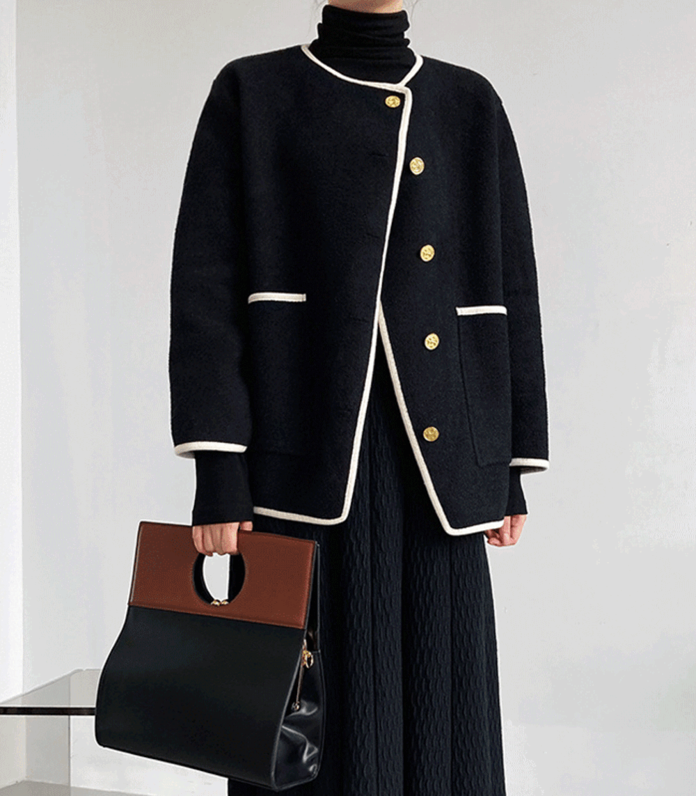 [명품 캐시미어 모직 코트/ 금속 버클 라운드넥] 양면모직 아우터 여성 겨울 모조 캐시미어코트 모직자켓 아우터 검정코트 트위드 퍼자켓 블랙자켓 모직재킷 겨울코트 짧은자켓 미니코트 숏자켓 세미 정장 결혼식 하객룩 패션 비지니스룩 트위드자켓