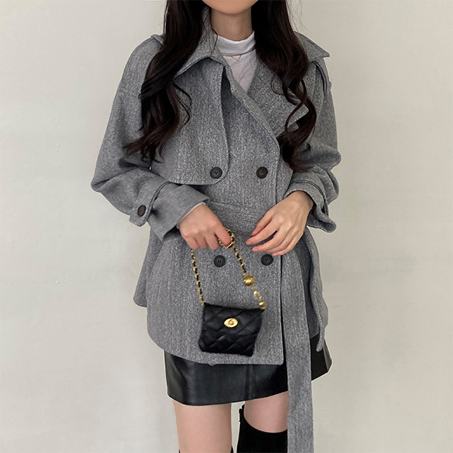 바툰 루즈핏 하프 트렌치 울 코트 (3color) [벨트세트/바바리/아우터/누빔안감/카라넥]