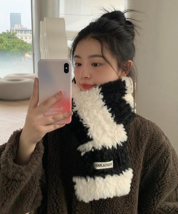 딸기우유 색감좋은 부들부들 따뜻한 리버 플리스 기모 스트라이프 머플러