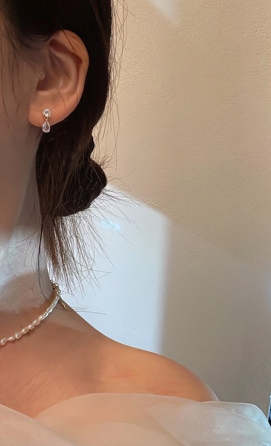 화이트 미니 큐빅 드롭 귀걸이 silver925 블라우스 웨딩 드레스 피팅 오픈숄더 하객 룩 연말 파티 코디
