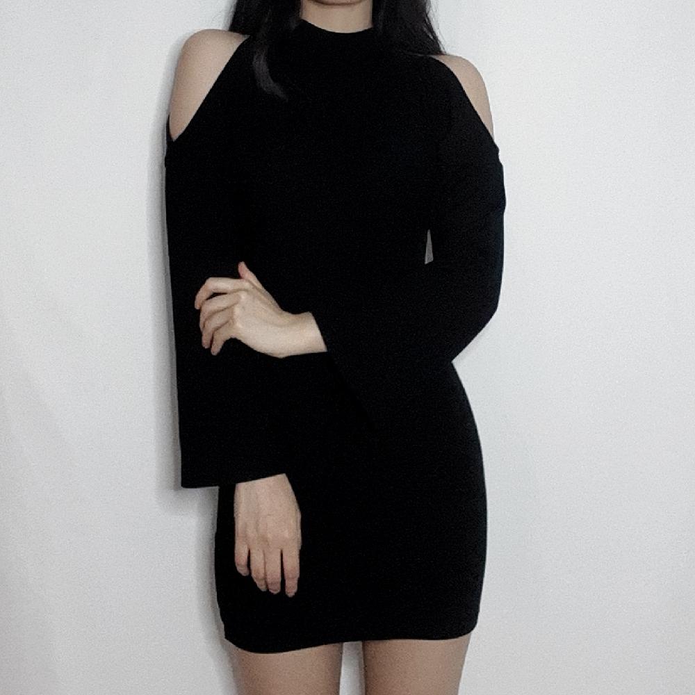 슬림 쫀쫀 타이트 어깨트임 퍼프소매 미니원피스 2color