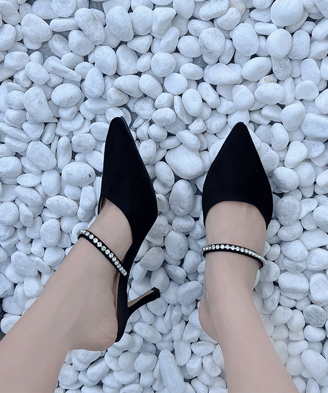 스틸레토 큐빅 스트랩 뮬 힐 스웨이드 미들힐 7cm