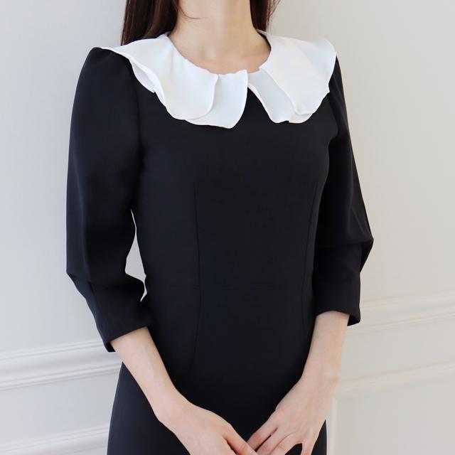 쉬폰 프릴넥 블랙 머메이드 하객 원피스(s,m)