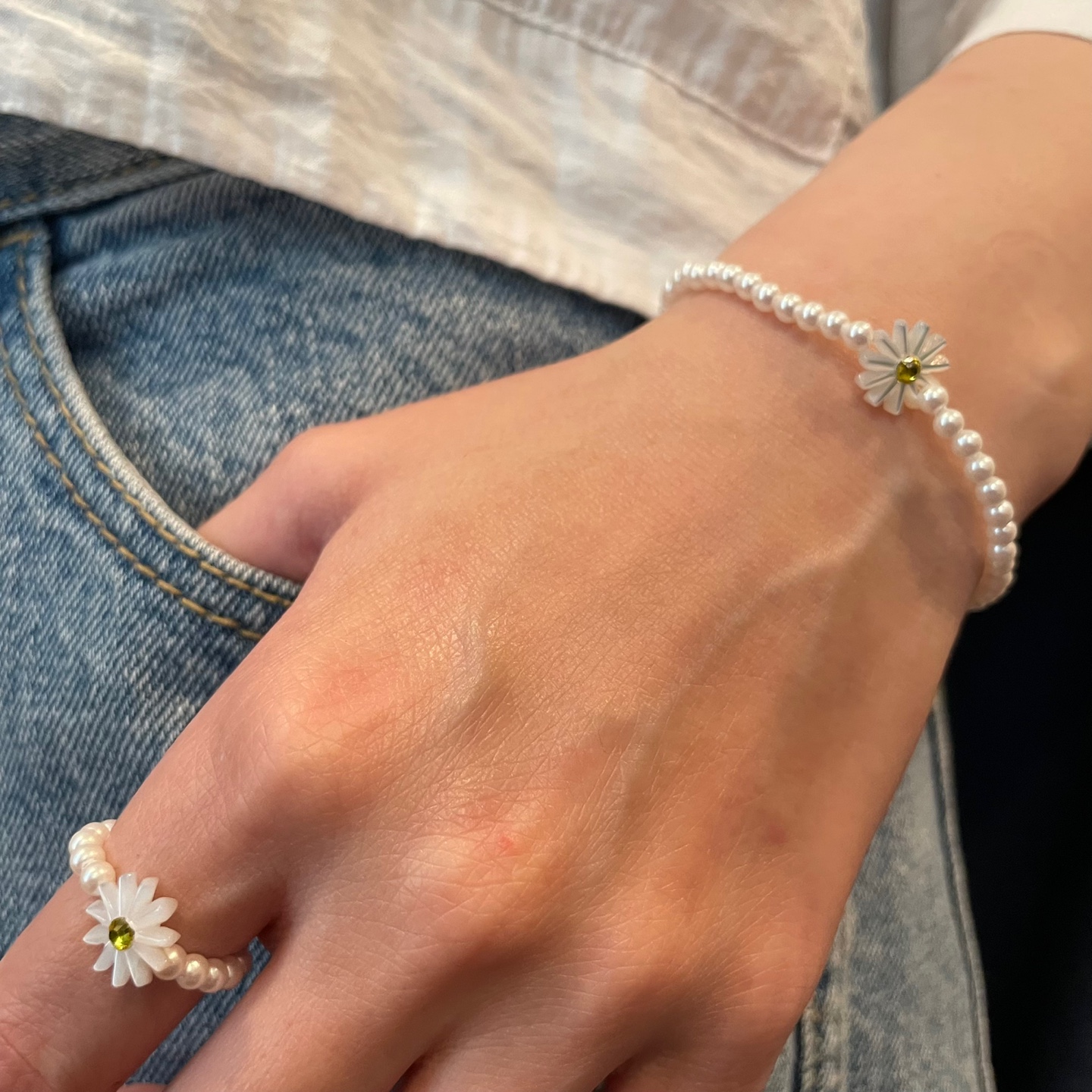 민들레 아크릴 진주 비즈 팬던트 꽃 반지 링 팔찌 세트 바캉스룩 우정링 우정템 초등학생 선물