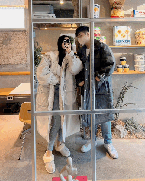 하이브롱 양털카라 남여공용 오버핏 커플 야상패딩