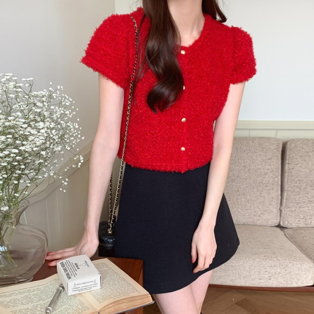 여자 빨간티 크리스마스 연말룩 푸들 뽀송 반팔티