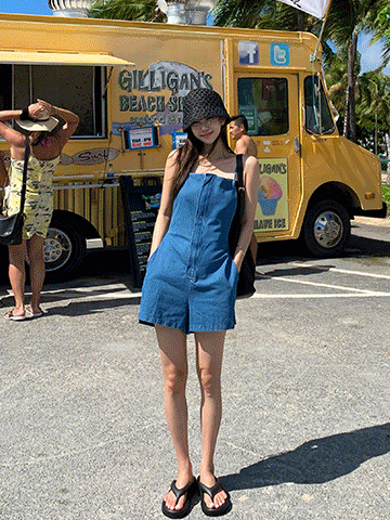 백크로스 데님 숏 점프수트