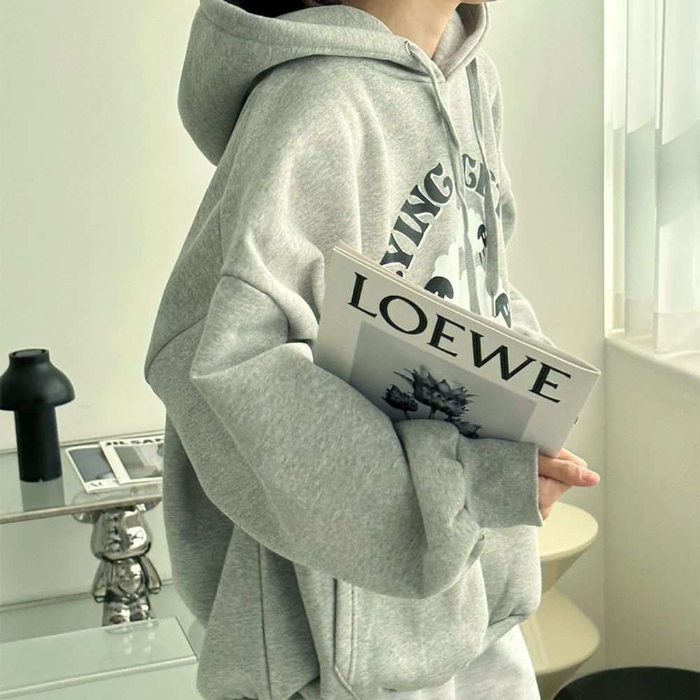 아방핏 빅사이즈 남여공용 캐릭터 프린팅 기모 후드 티셔츠 커플 후디 맨투맨 오버핏 4color
