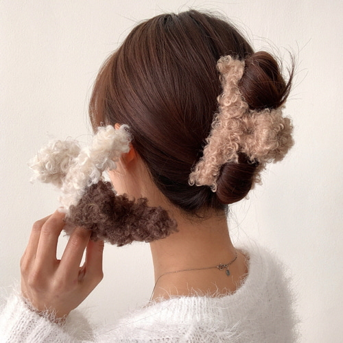 [당일출고] 위글위글 푸들 퍼 겨울 털 밍크 집게핀 올림머리 헤어핀 3color