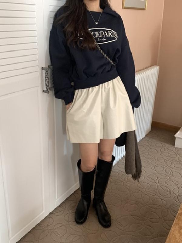 (아이2장) 레더 밴딩 숏팬츠(3color) 하이웨스트 여유핏 가죽 반바지