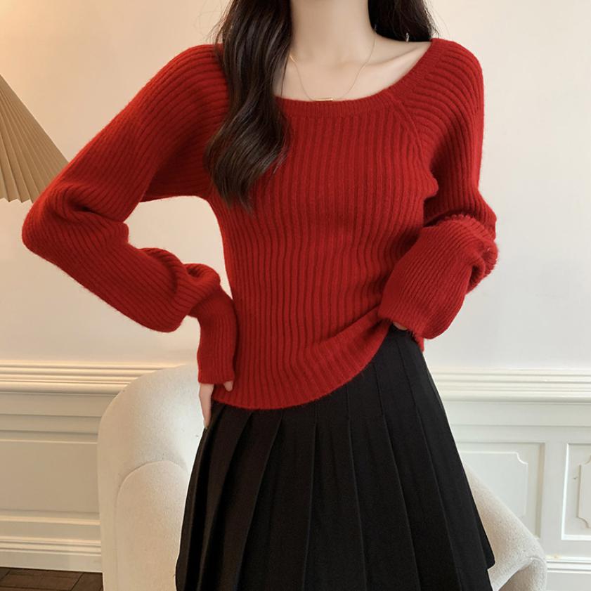 세미 크롭 보트넥 스퀘어넥 크리스마스 버건디 나그랑 퍼프 소매 니트 아이보리 스웨터