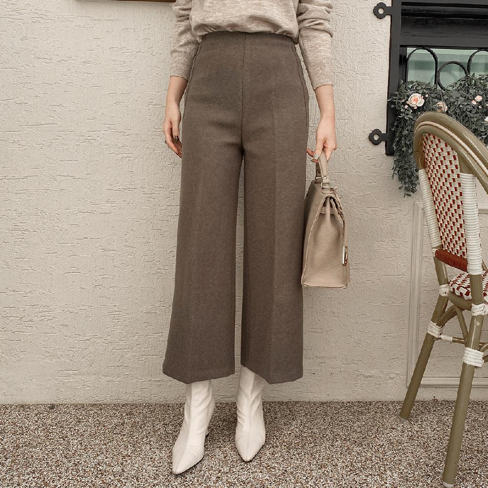 여성 모직 바지 8부 와이드 팬츠 기모 부츠컷 기모와이드 통바지 슬랙스 [국내 제작]