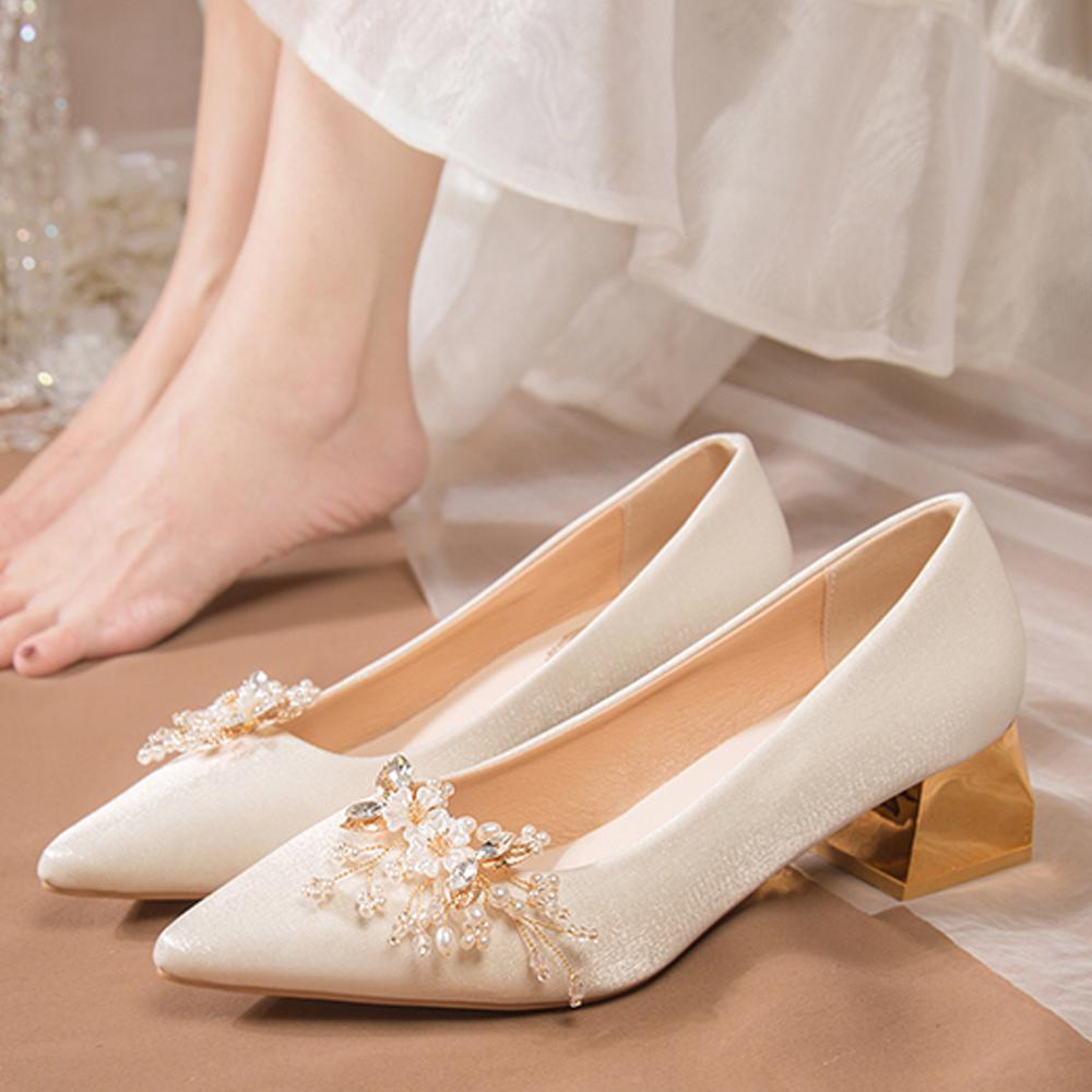 (이벤트235,240) 아로브 2cm 새틴 결혼식 통굽 웨딩 플랫 슈즈 1color