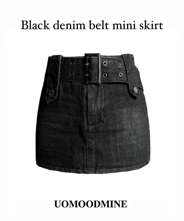 (3size) unique black denim belt set mini skirt / y2k 유니크 빈티지 스트릿 흑청 하이틴 로우라이즈 벨트 세트 치마 미니 스커트