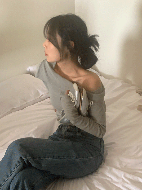 [누적6천장!/승모근커버] 메리유 골지 오프숄더 니트 티셔츠