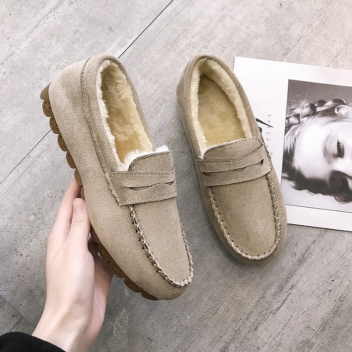 여자 브라운 하비 털 방한 겨울 기모 털 발볼넓은 명품 퍼 모카신 로퍼 따뜻한 신발 선물 8891-1