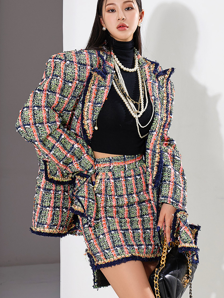 J9217 트위드 스팽글 누빔 자켓