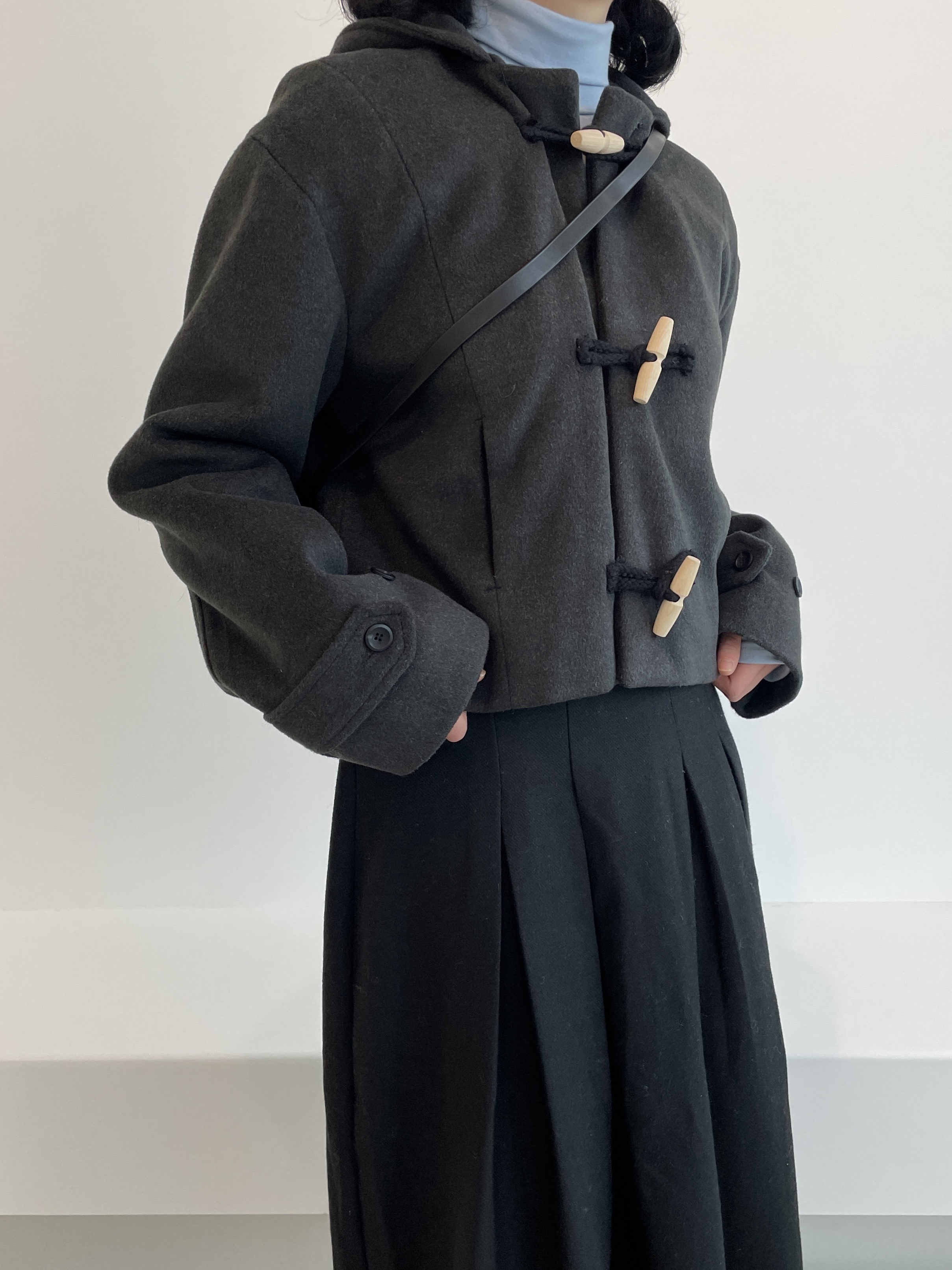 [누빔안감/아메카지] 떡볶이 미니 숏 후드 울 코트