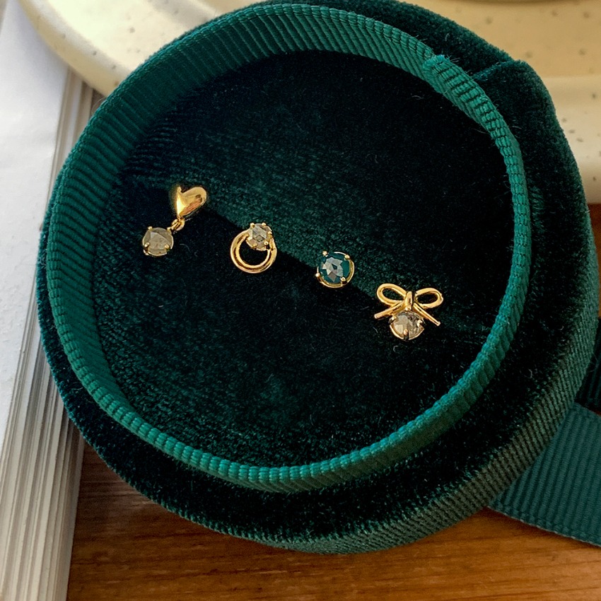 [당일/4종] 14K 데일리 러프 다이아 하트 리본 금 피어싱 귀걸이