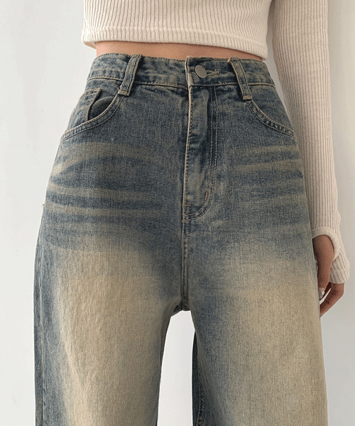 [은은감성]워싱청 루즈 베이지 포인트 오묘 컬러 와이드 데님팬츠
