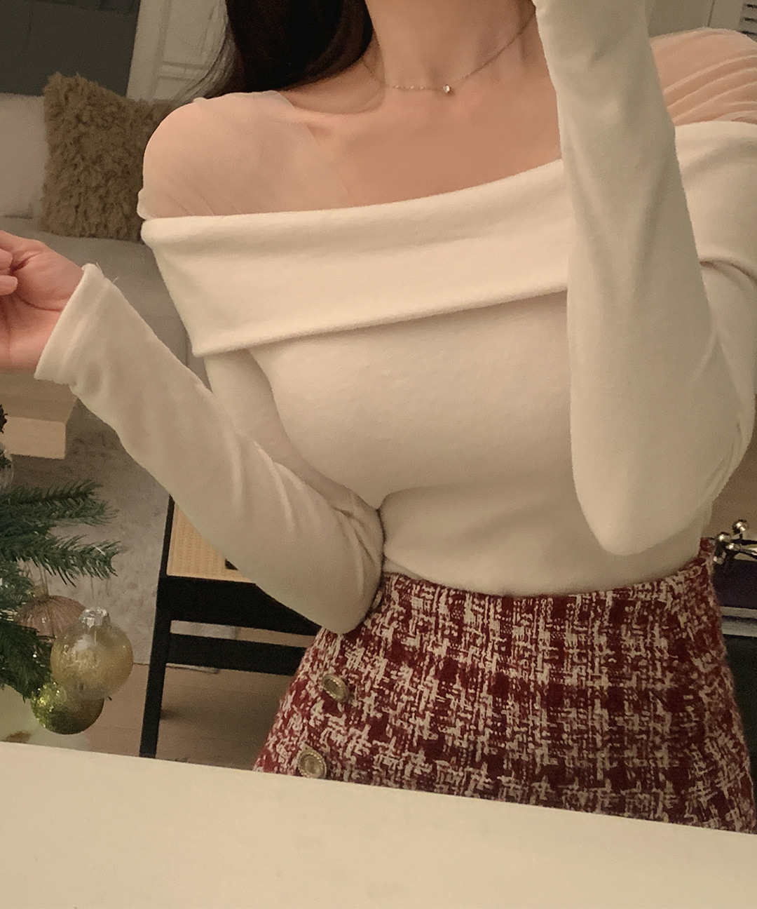 헤이빈 시스루 오프숄더 기모 티셔츠(3차 재진행)