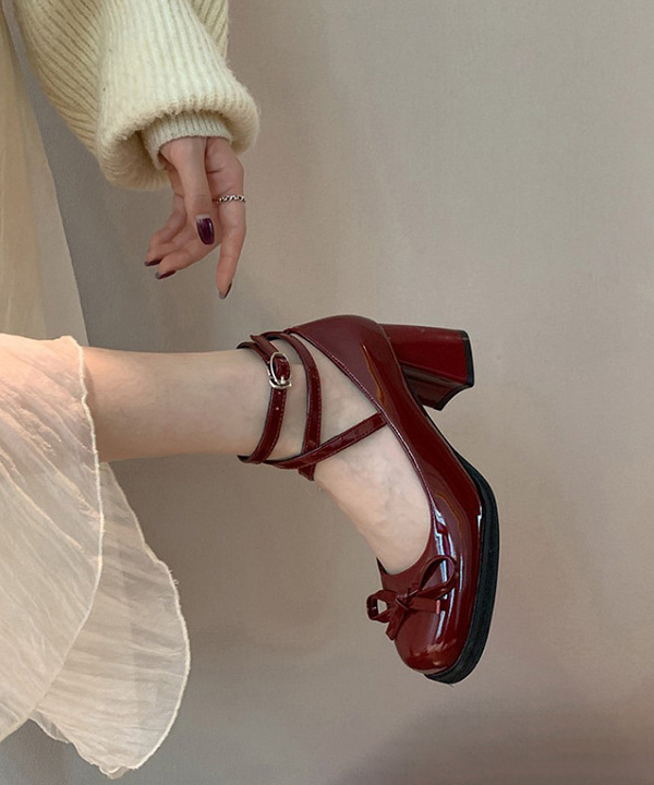 무료배송 진주리본 스트랩펌프스힐 (블랙,레드와인)