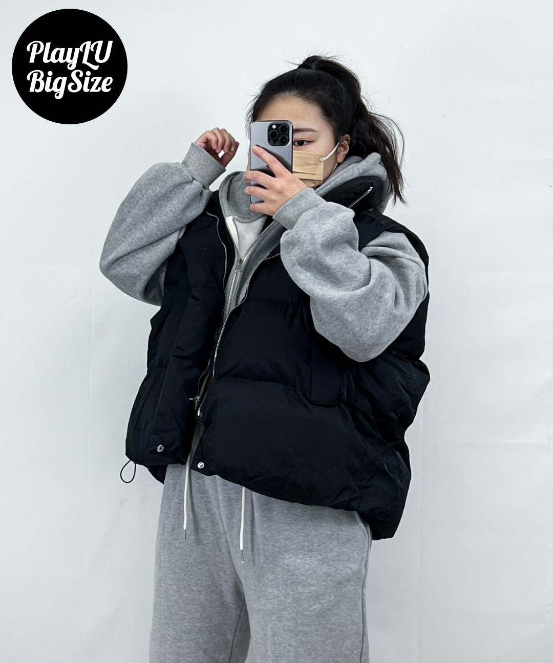 빅사이즈 왕빵빵 오버핏 스트링 패딩 조끼 점퍼 (아이보리/라이트카키/블랙)