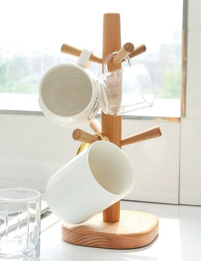 [깔끔 주방 🧡] 우드 컵 걸이 👨🍳 나무 원목 커피잔 찻잔 유리컵 보관 수납 키친 부엌 정리 정리대