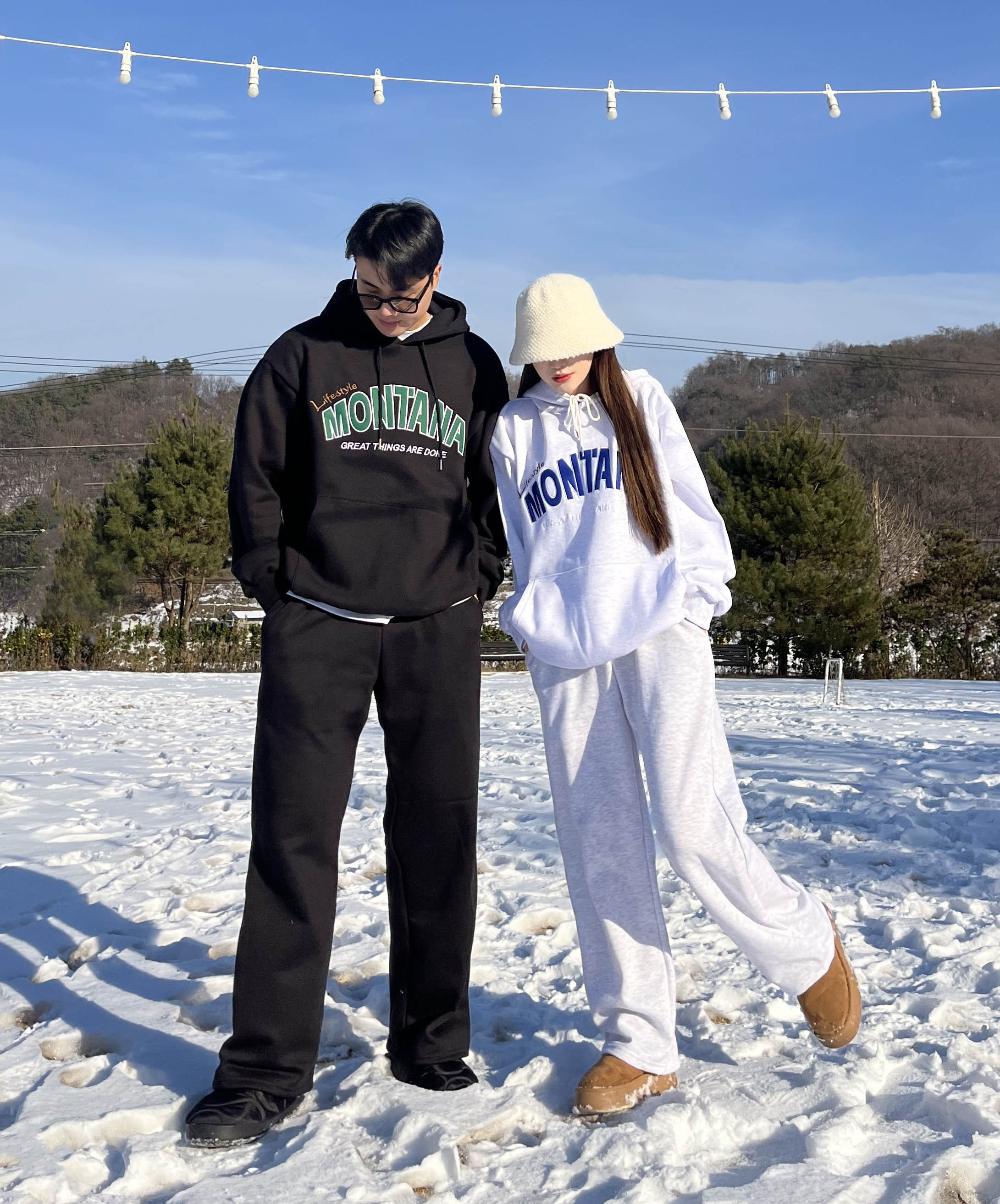 [기모/SET가능] 남녀공용 레터링 기모 후드티 와이드팬츠 커플 트레이닝 세트 겨울 츄리링 바지 커플후드 꾸안꾸 데일리 시밀러룩 커플룩 캠핑룩