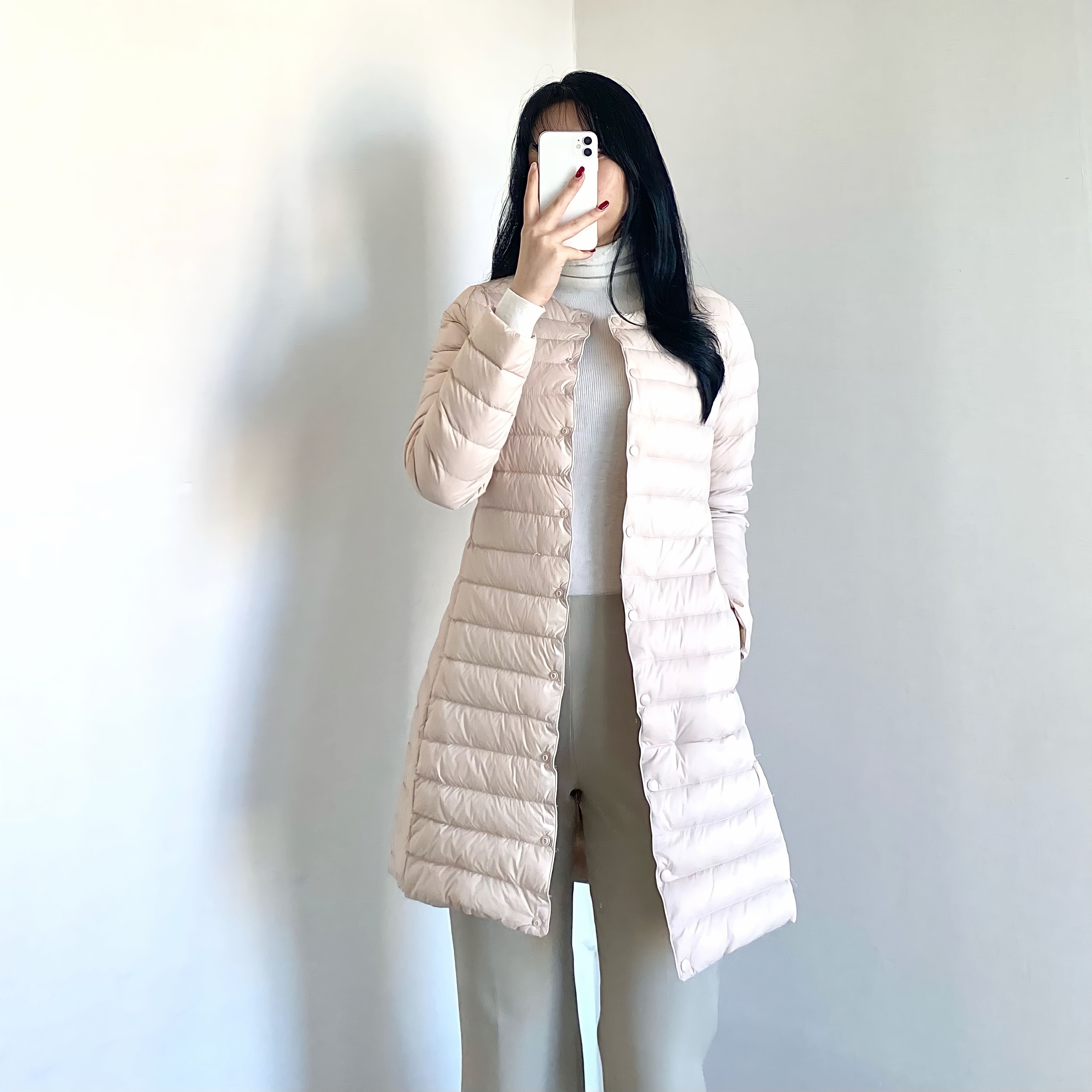 덕다운 오리털 100 경량 롱 얇은 가벼운 패딩 점퍼 핑크 베이지 블랙 브라운