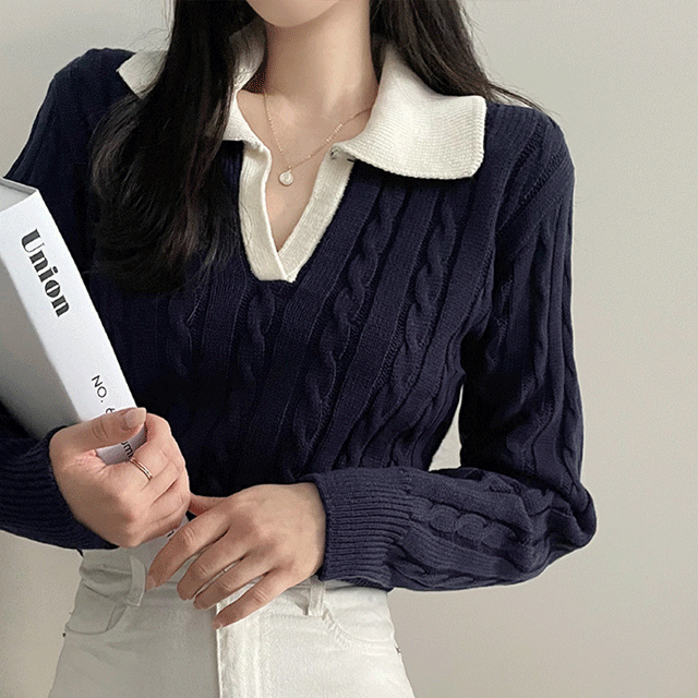 [예쁨~] 로망 케이블 오픈 카라 꽈배기 니트 4color