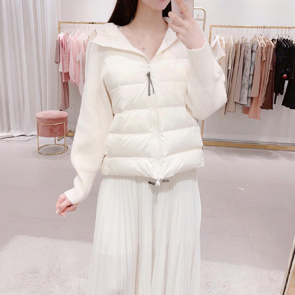 [수입] 쿠치 비즈 니트 소매 후드 덕다운 경량 패딩