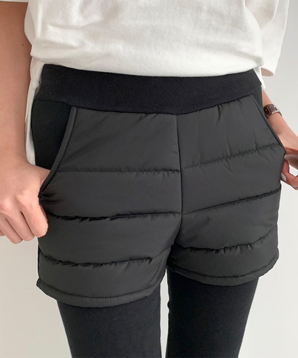 F XL 누빔 패딩 밴딩 밍크퍼 피치 기모 반바지레깅스 겨울 도톰 주머니