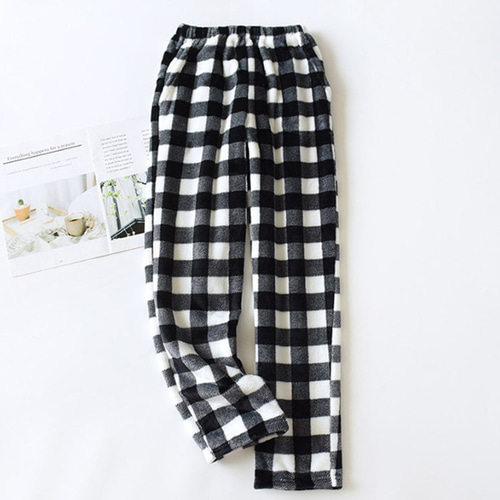 [1+1] 포근하게 극세사 남녀공용 커플 체크 수면바지