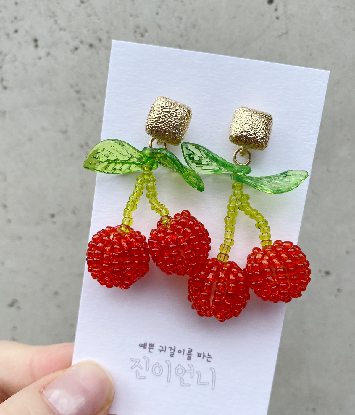과즙팡팡 레드 체리 비즈 귀걸이 은침 키치 드롭 롱 귀여운 깜찍 앵두 포인트 사랑스러운