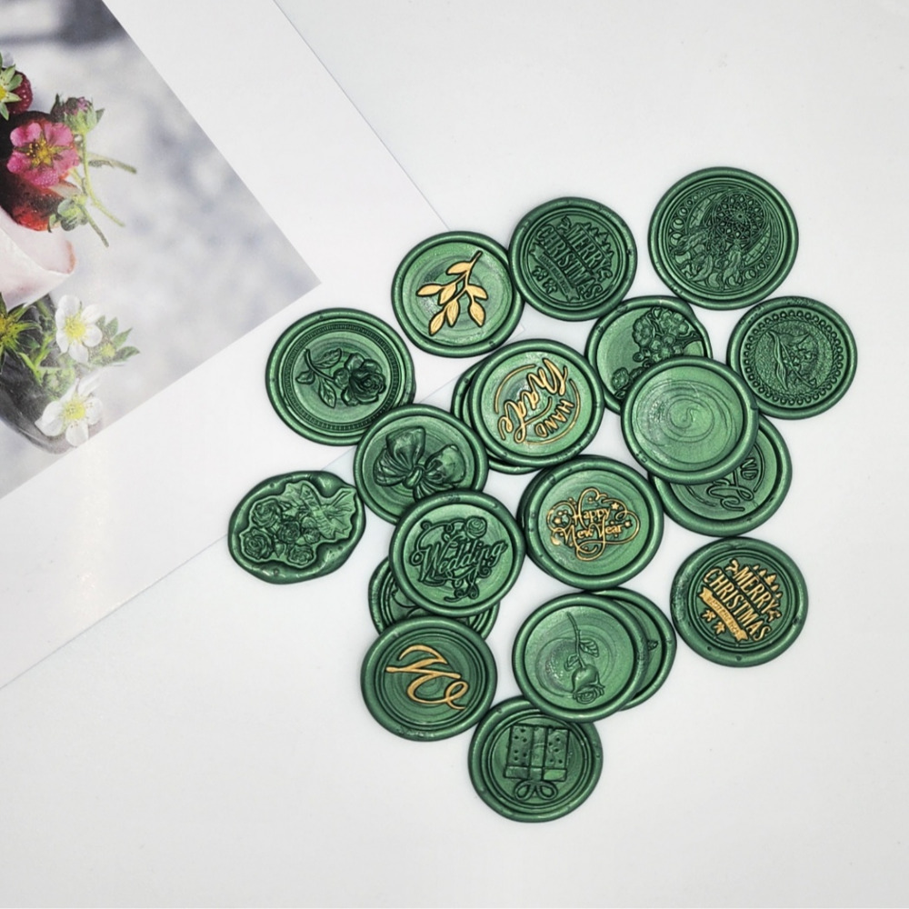 실링왁스 스티커 핸드메이드 청첩장 다꾸 답례품 포장 그린펄 10개 디자인선택가능