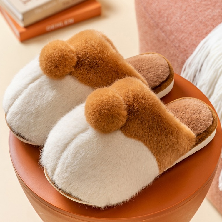 [4사이즈] 웰시코기실내화 보아털실내화 겨울 웰시코기 엉덩이 귀여운 털 슬리퍼 EVA 실내화 거실화 코기슬리퍼 강아지슬리퍼 강아지털슬리퍼 방울슬리퍼 털실내화 방울실내화 단체 데일리