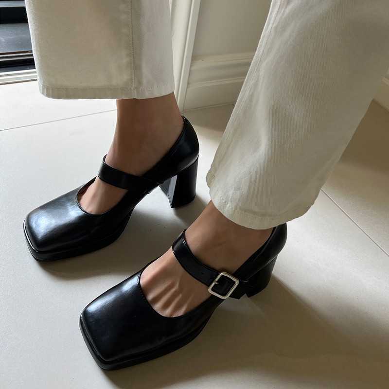 [RP2969] 리누엘 스퀘어 메리제인 플랫폼 펌프스7.5cm