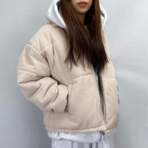 [남녀공용/골덴패딩/3컬러] 코듀로이 골덴 숏패딩 커플 오버핏 웰론 미니멀 탄탄 [1243]