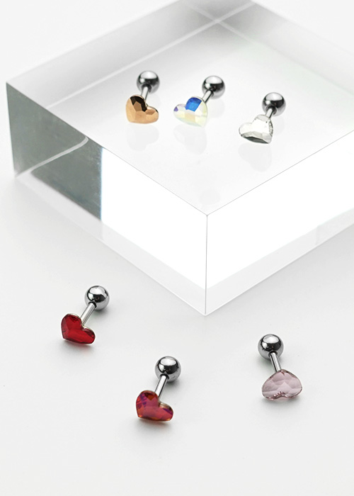 써지컬스틸 6색상 컷팅큐빅 하트 바벨 피어싱 P-0381