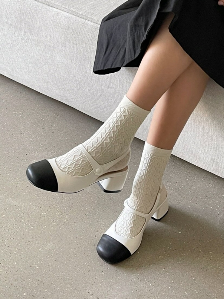 샤샤 라운드 포인트 배색 투톤 콤비 미들힐 메리제인 슬링백 5cm