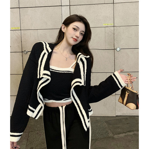 [당일출고] 블랙 라이닝 가디건 니트탑 니트바지셋업 겨울여행룩 캠핑룩
