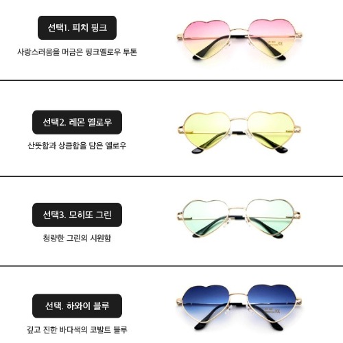 4색 틴트선글라스 패션 하트 유니크 학생 축제 체육대회 인생네컷 선글라스 하루필름 / My heart when I look at you