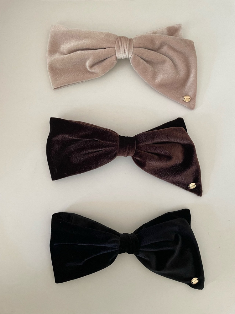 amiment 아미먼트 소피 벨벳 왕 리본 금장 골드 헤어핀 3color
